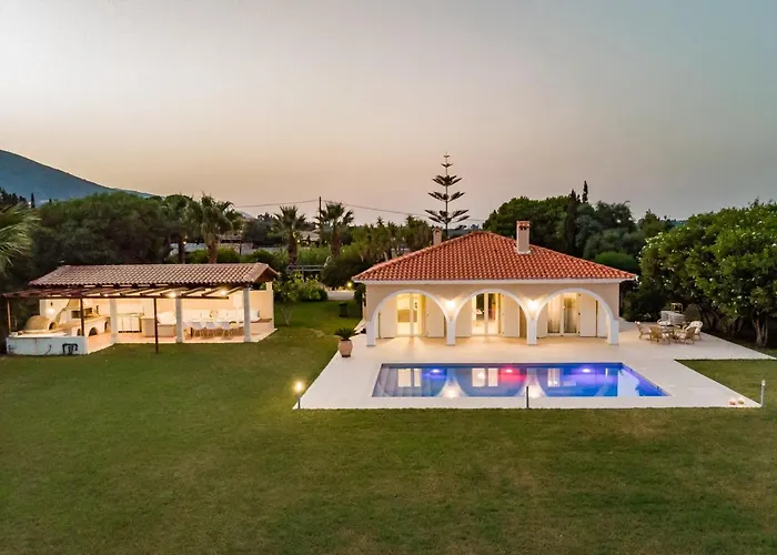 Den nærmeste lufthavn er Zakinthos, cirka 15 minutters kørsel fra overnatningssted. Villaen haren pejs og en gårdhave som er til gæsternes rådighed.